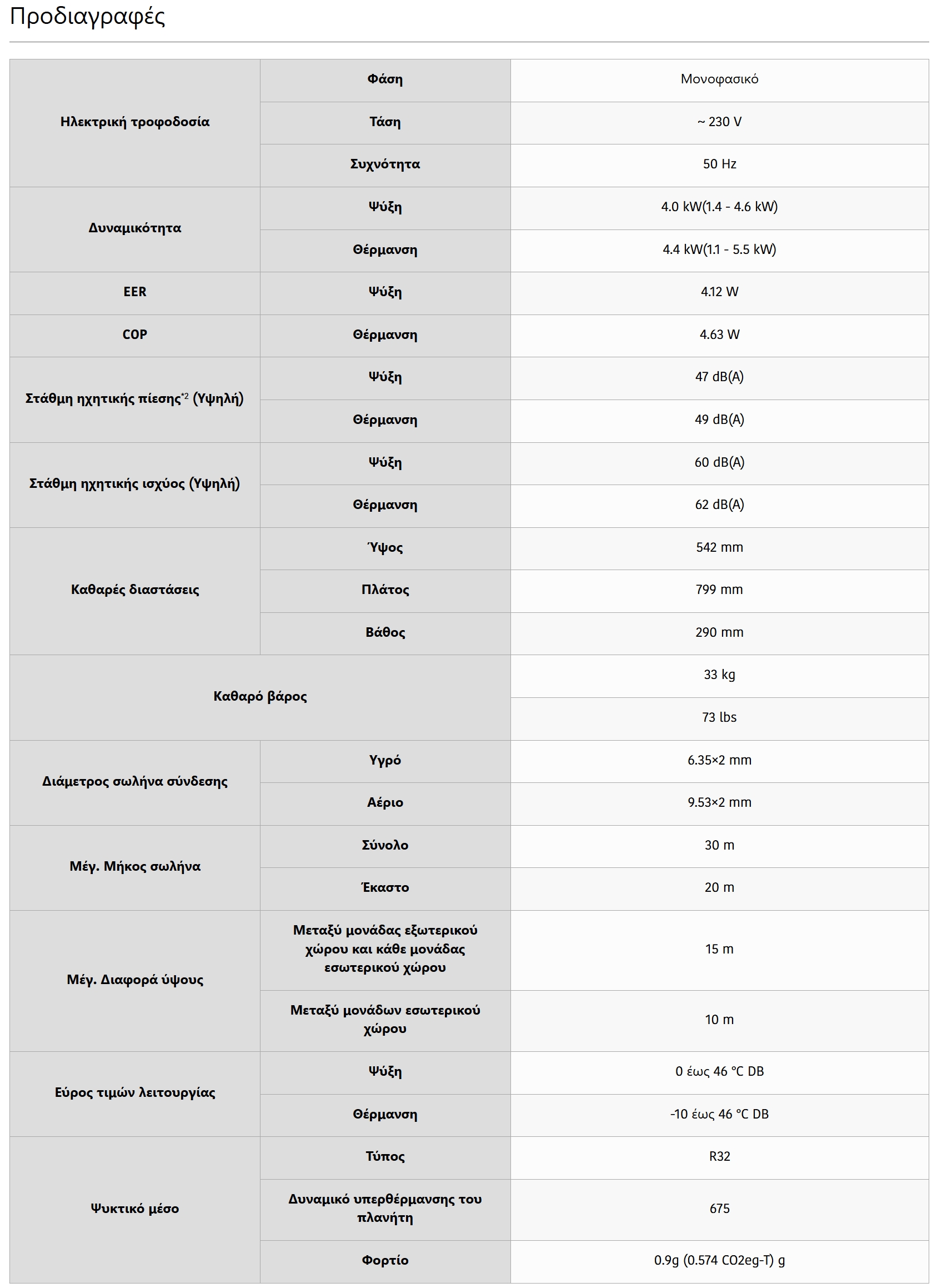 • Διαθέτει το νέο ψυκτικό μέσο R32