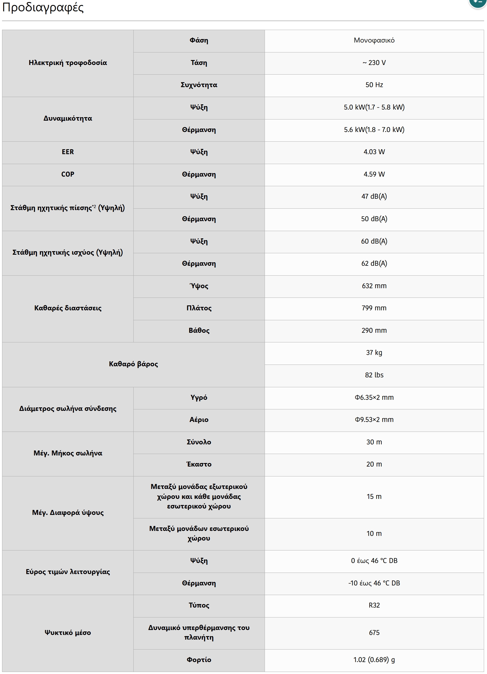 - Διαθέτει το νέο ψυκτικό μέσο R32