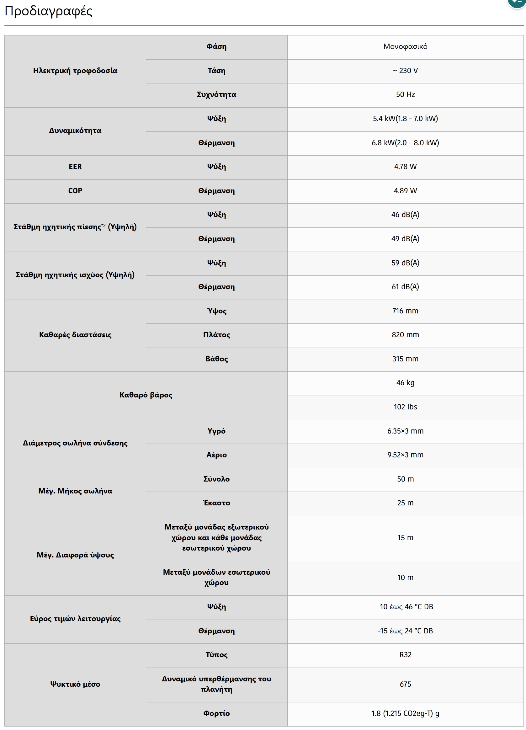 - Διαθέτει το νέο ψυκτικό μέσο R32
