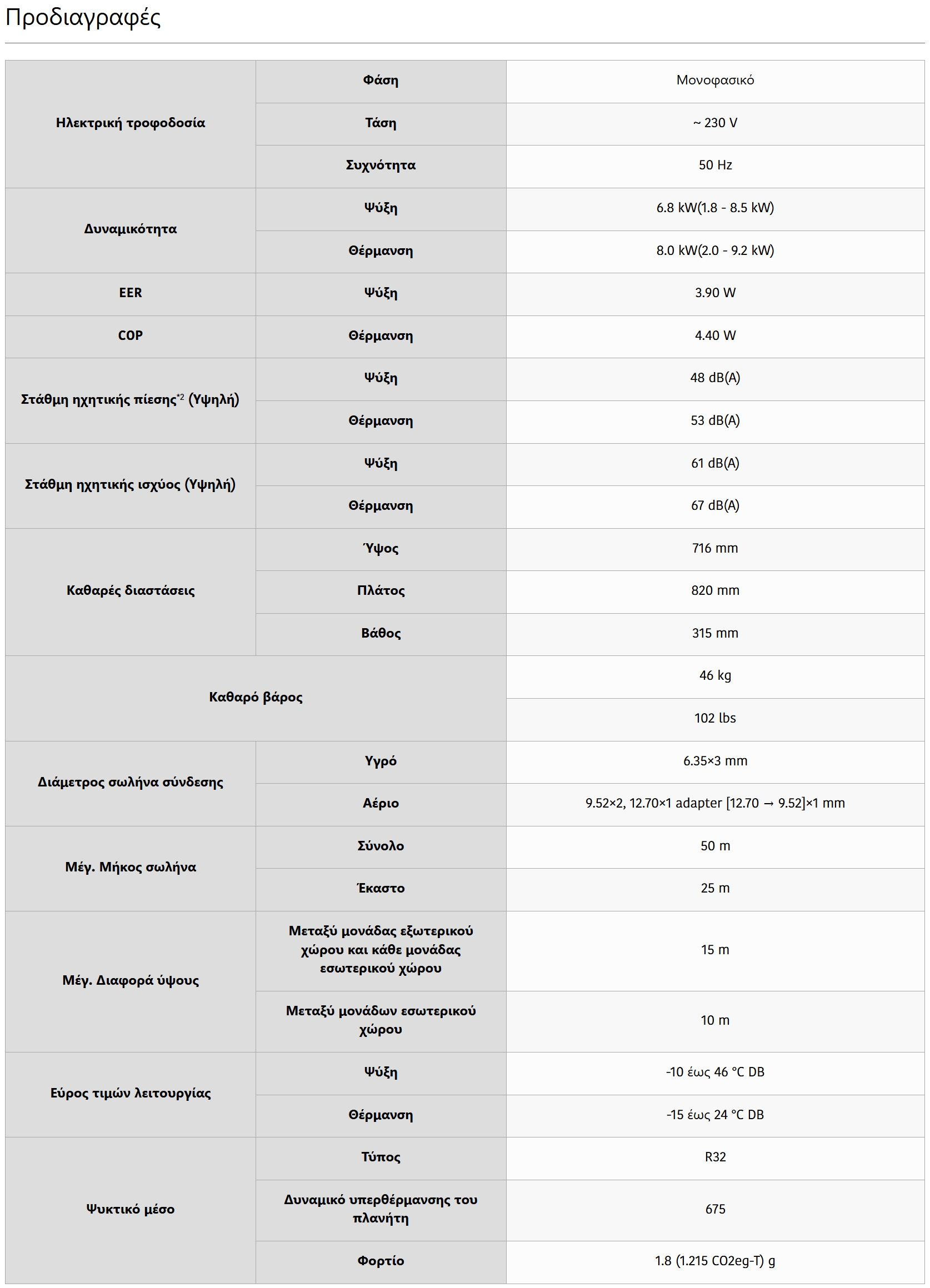 - Διαθέτει το νέο ψυκτικό μέσο R32