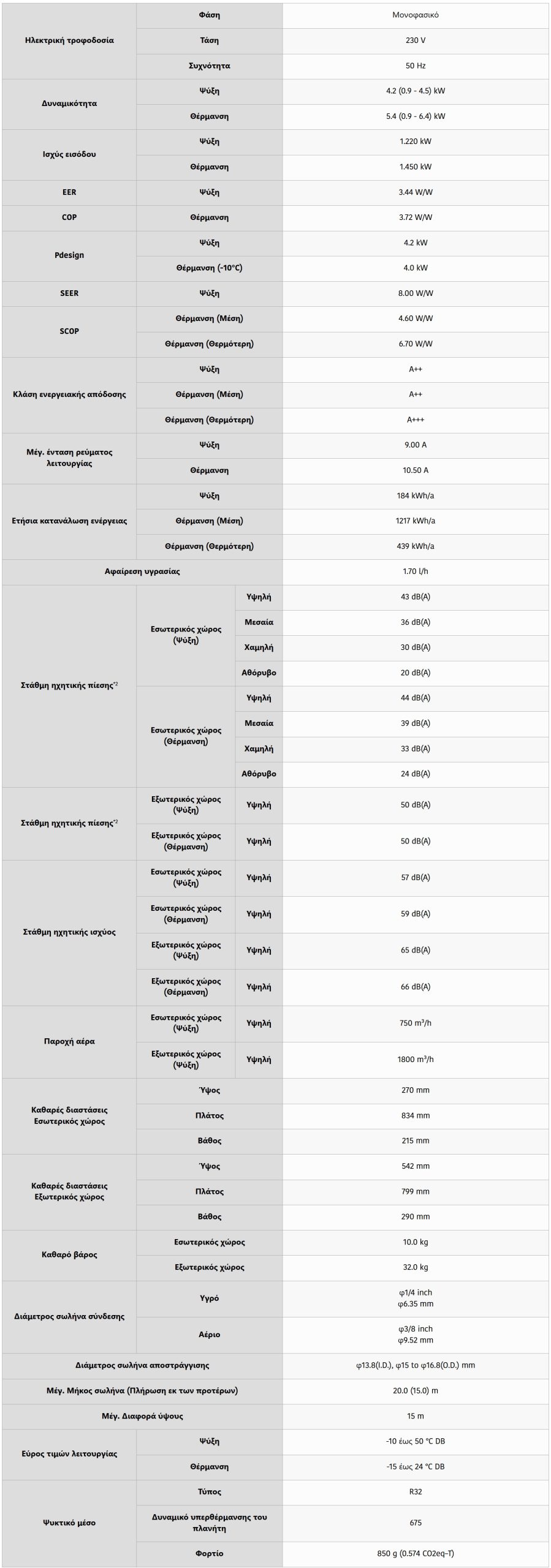 Χάρη στη χρήση του εναλλάκτη θερμότητας Lambda υψηλής απόδοσης, του μεγάλου ανεμιστήρα εγκάρσιας ροής και του ψυκτικού μέσου R32 επιτυγχάνεται εξαιρετική ενεργειακή απόδοση.