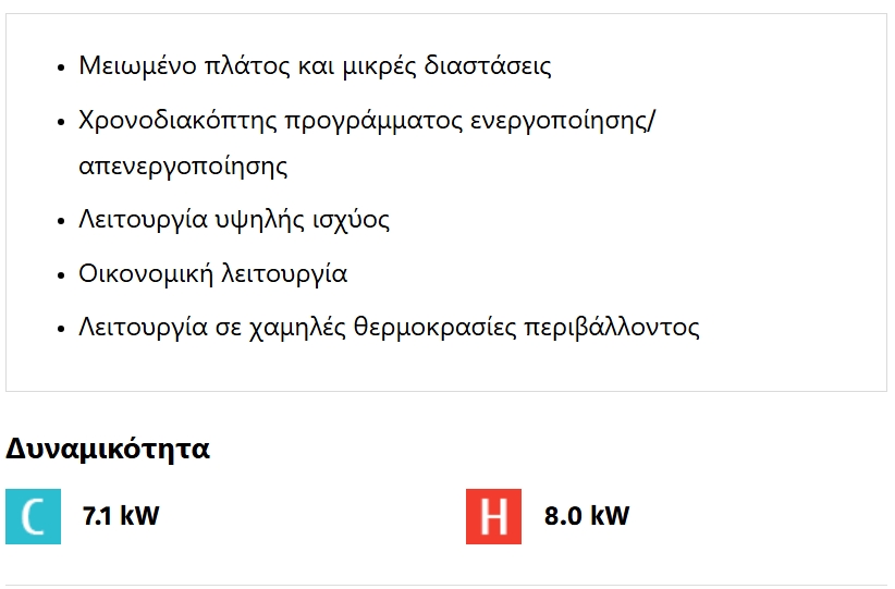 Στη λειτουργία υψηλής ισχύος, ο συμπιεστής λειτουργεί στη μέγιστη ταχύτητα για 20 λεπτά, ώστε να εξασφαλίζεται ισχυρή παροχή αέρα. Ψύχει ή θερμαίνει γρήγορα το χώρο στην επιθυμητή θερμοκρασία.