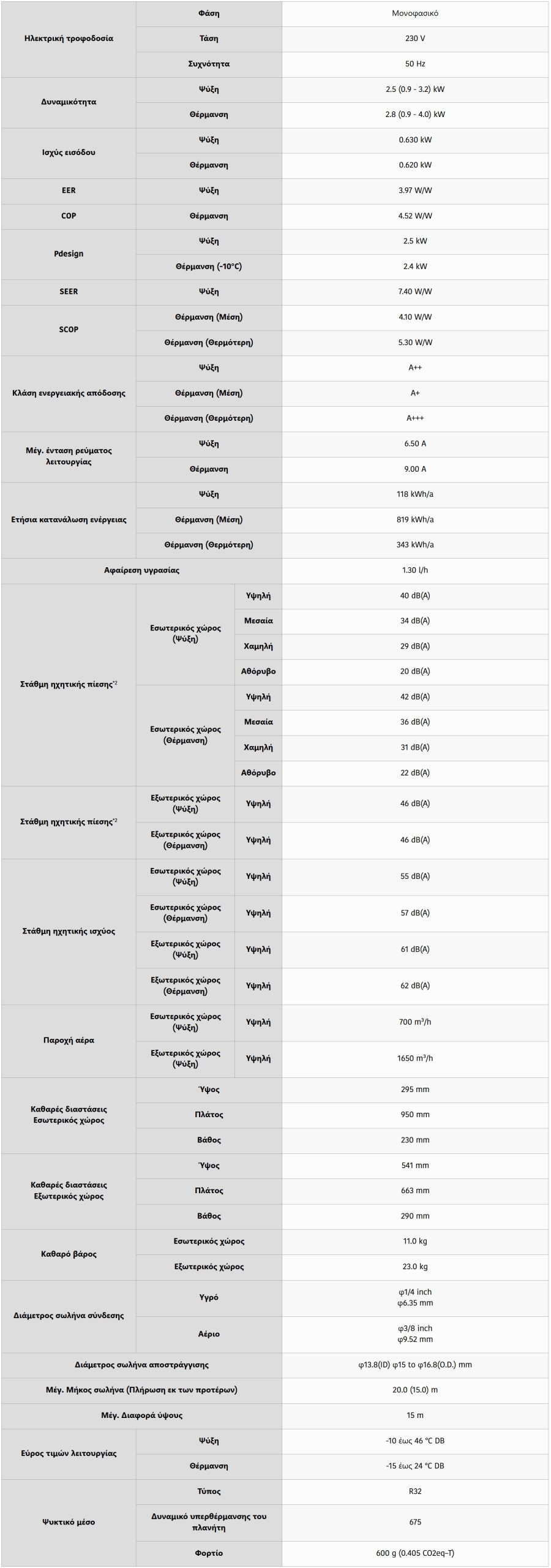 Χάρη στη χρήση του εναλλάκτη θερμότητας Lambda υψηλής απόδοσης, του μεγάλου ανεμιστήρα εγκάρσιας ροής και του ψυκτικού μέσου R32 επιτυγχάνεται εξαιρετική ενεργειακή απόδοση.