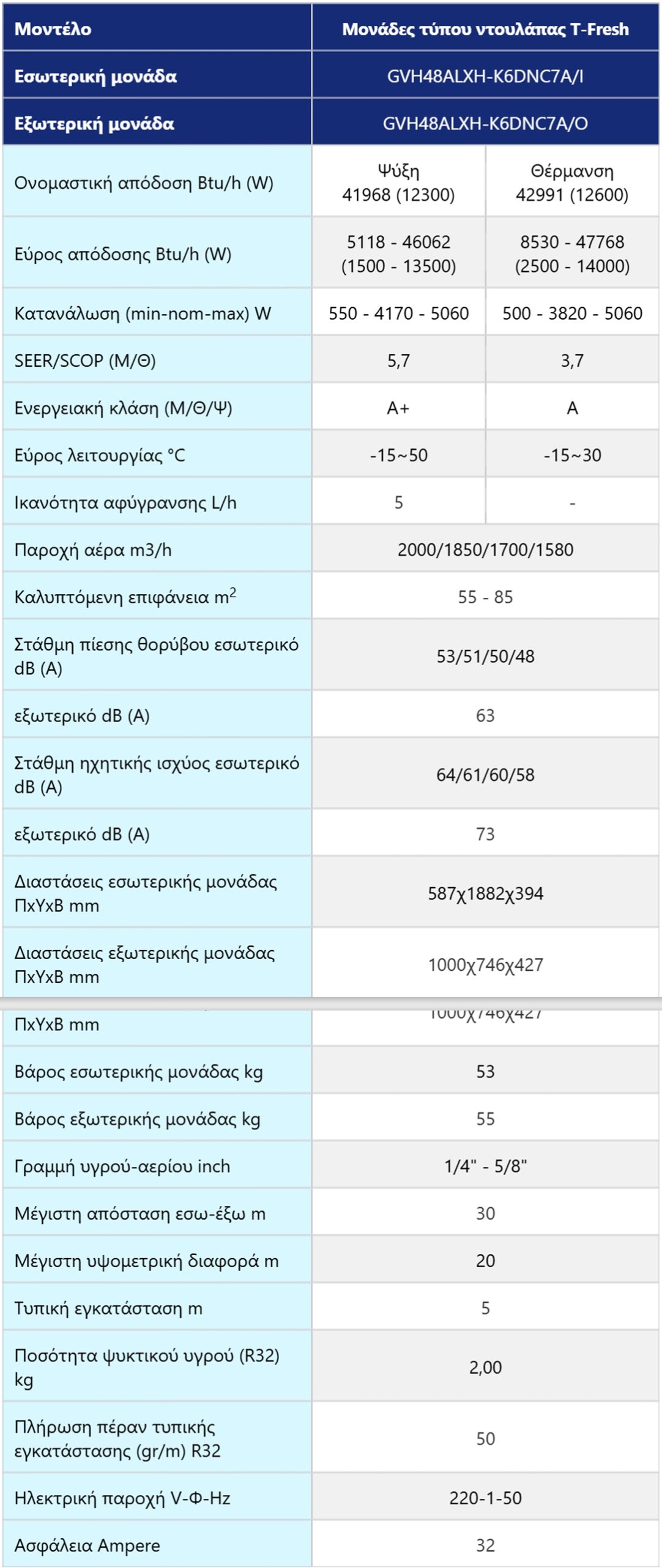ΚΛΙΜΑΤΙΣΤΙΚΟ GREE ΝΤΟΥΛΑΠΑ GVH48AL-K6DNC7A ΜΟΝΟΦΑΣΙΚΗ ΕΩΣ 12 ΑΤΟΚΕΣ ΔΟΣΕΙΣ ΜΕ ΠΙΣΤΩΤΙΚΗ Ή ΕΩΣ 60 ΔΟΣΕΙΣ ΜΕ ΤΡΑΠΕΖΙΚΟ ΠΛΑΝΟ ΔΟΣΕΩΝ