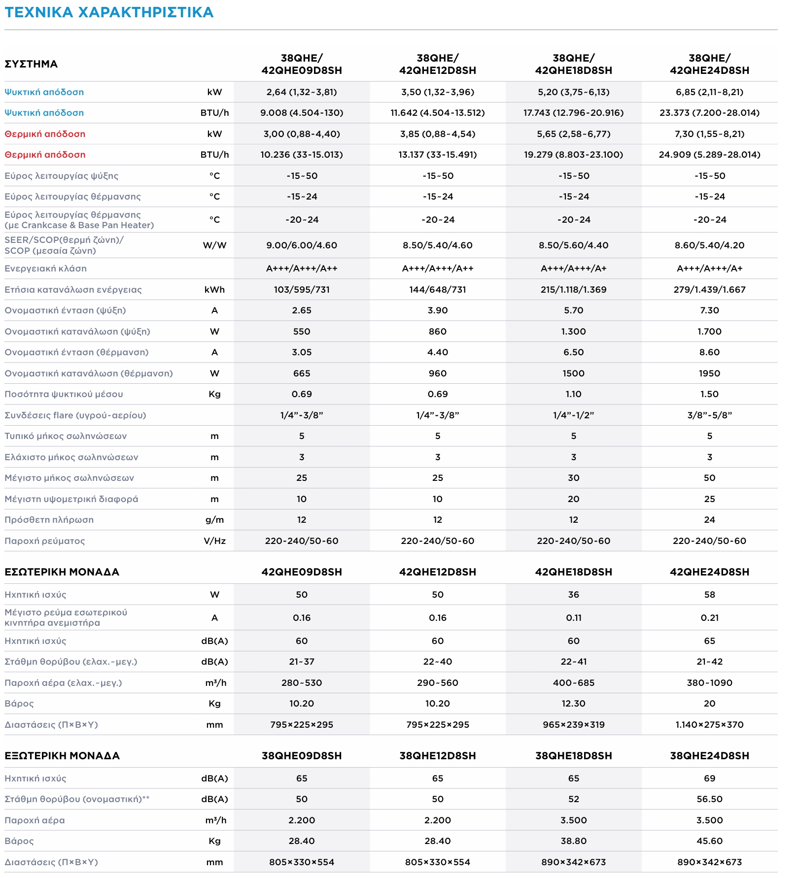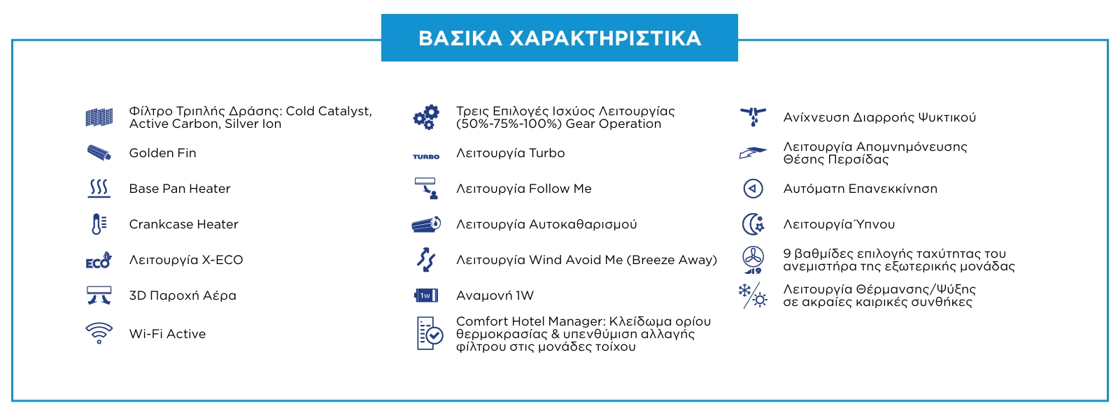 - Εξοικονομήστε ενέργεια | Με SEER έως 9.0 και SCOP έως 6.0 (θερμή ζώνη) δείτε μειωμένους λογαριασμούς ηλεκτρικού ρεύματος και ξεγνοιάστε