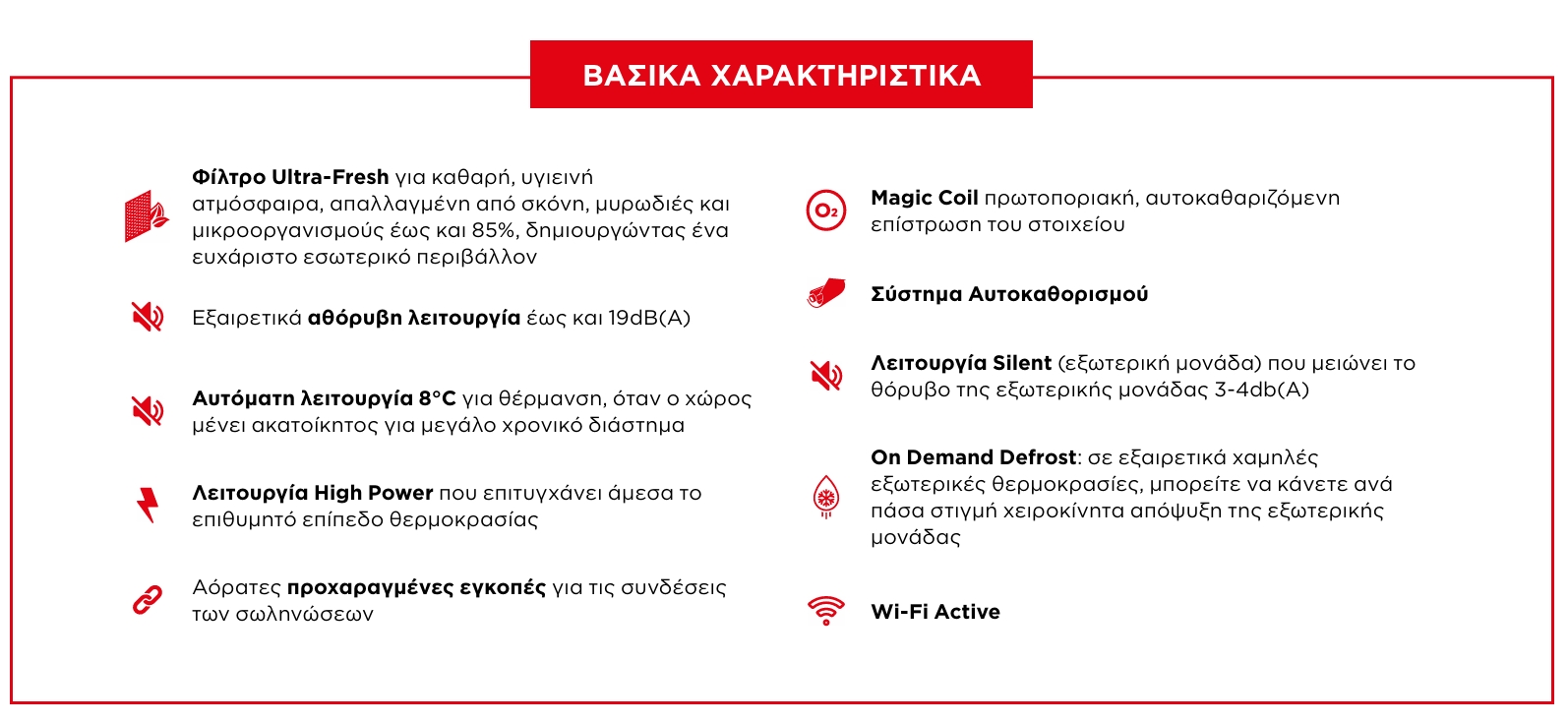 • Λειτουργία Αυτοκαθαρισμού| Διατηρείστε την άψογη λειτουργία της μονάδα καθώς καθαρίζεται αυτόματα όταν απενεργοποιείται