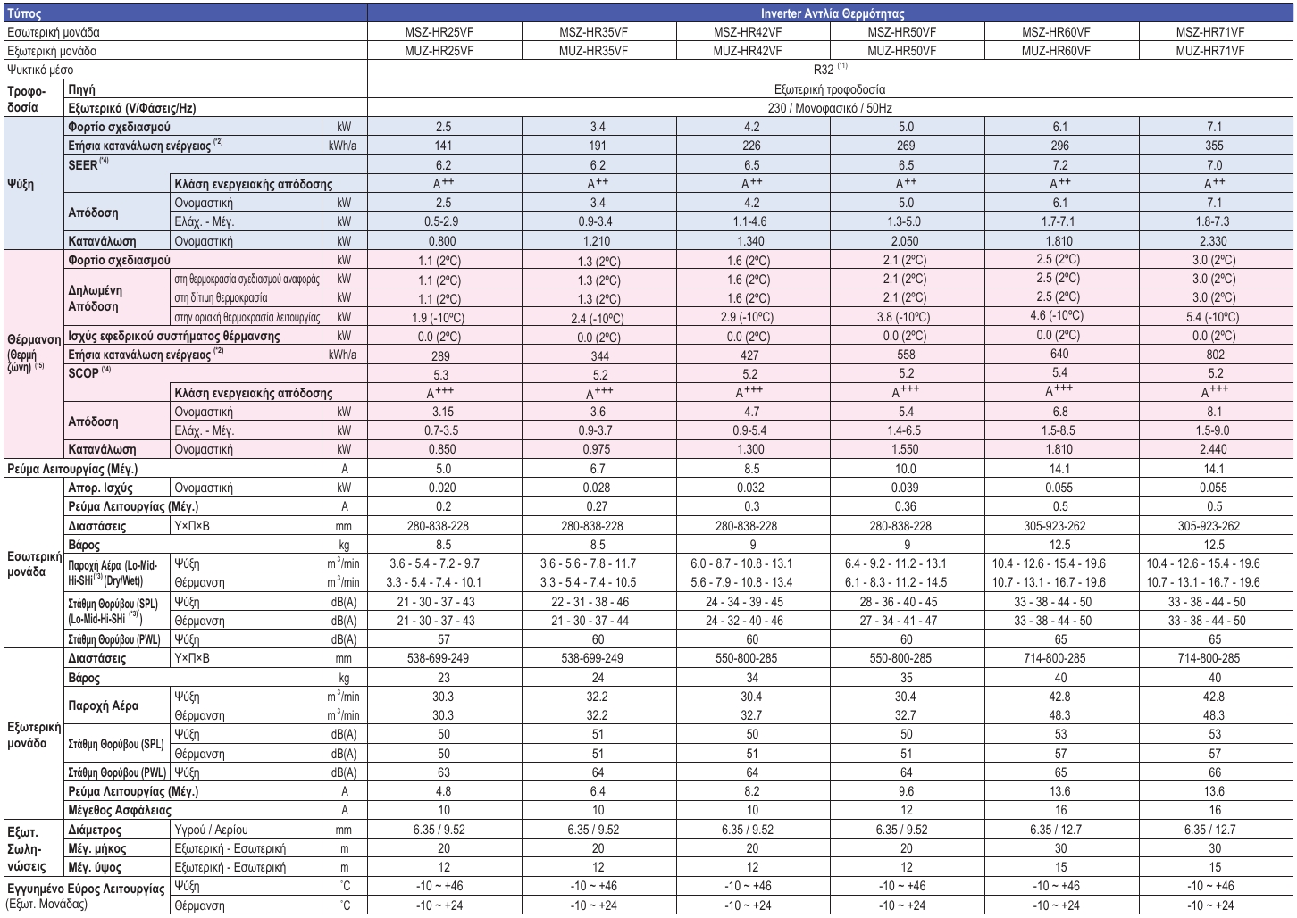 Όλα τα μοντέλα της σειράς, από το πιο χαμηλής απόδοσης (25) έως το πιο υψηλής απόδοσης (71), επιτυγχάνουν βαθμολογίες ενεργειακής κλάσης Α++ όσον αφορά τον εποχιακό βαθμό ενεργειακής απόδοσης ψύξης (SEER) και Α+ όσον αφορά τον εποχιακό συντελεστή απόδοσης θέρμανσης (SCOP), χάρη στις τεχνολογίες inverter της Mitsubishi Electric που παρέχουν αυτόματη προσαρμογή του φορτίου λειτουργίας ανάλογα με τις ανάγκες σας.